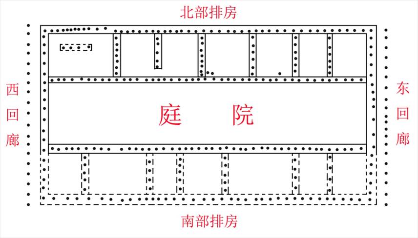 “從柱洞的分布規(guī)律來看,這一夯土臺基整體應(yīng)是南北為排房建筑、中部為庭院、東西帶回廊的結(jié)構(gòu),規(guī)模宏大,結(jié)構(gòu)復(fù)雜?!惫懦钦z址發(fā)掘現(xiàn)場負(fù)責(zé)人李博說。