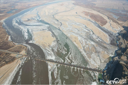2023年12月24日,山西運城,黃河臨猗段出現(xiàn)流凌,吳王古渡拆除浮橋,流凌從缺口處緩緩?fù)ㄟ^。