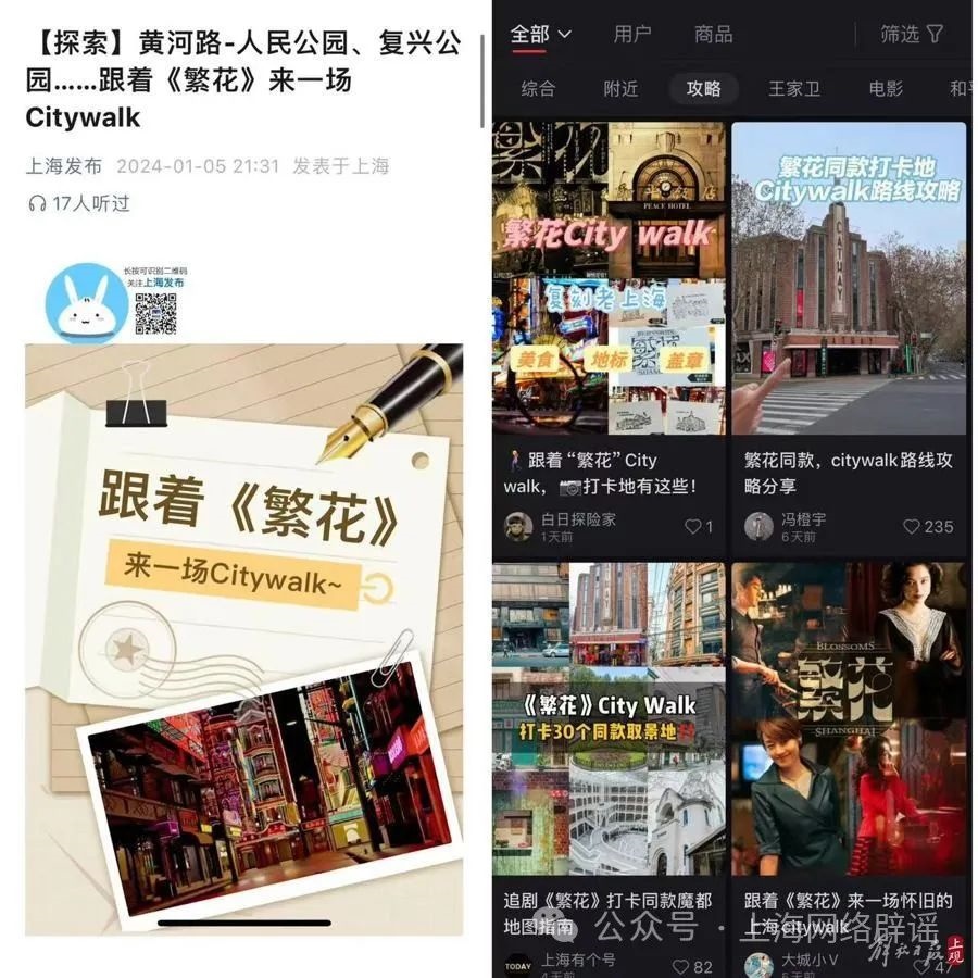 央視網(wǎng)消息:據(jù)上海網(wǎng)絡(luò)辟謠微信公眾號(hào)消息,電視劇《繁花》近日熱播,帶火了和平飯店、黃河路、進(jìn)賢路等劇中出現(xiàn)的地標(biāo)、路段,市民游客爭(zhēng)相打卡。誰(shuí)知,這一熱度也被造謠生事者嗅出了“商機(jī)”——連續(xù)數(shù)日,“繁花Citywalk(城市散步)收費(fèi)3公里520元”的話(huà)題登上某社交平臺(tái)熱榜。兜馬路竟然也要收費(fèi),而且代價(jià)不菲?上海辟謠平臺(tái)調(diào)查發(fā)現(xiàn),并沒(méi)有。