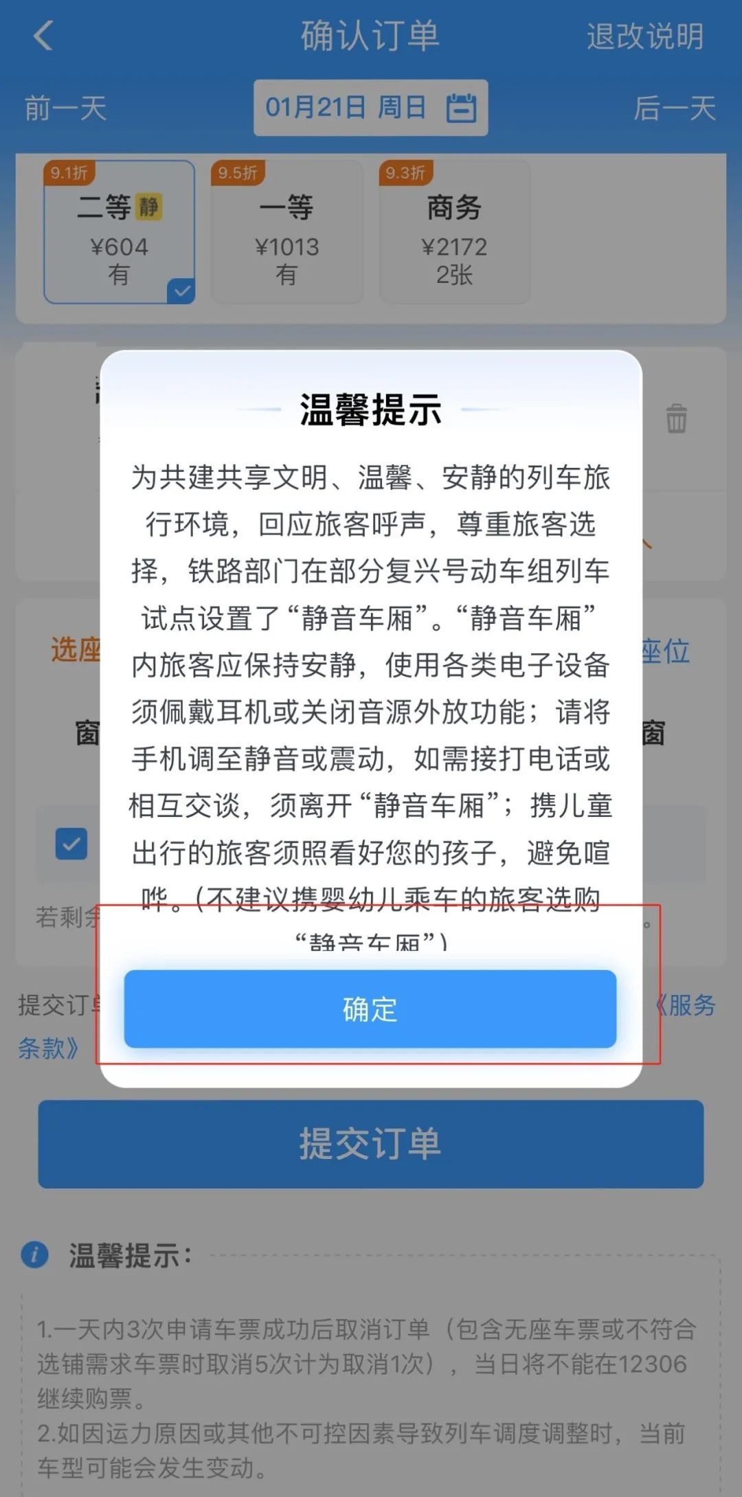 選擇靜音車廂沒(méi)有額外費(fèi)用