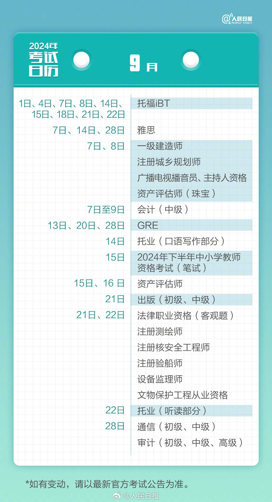 2024年已過去20多天,你的學(xué)習(xí)考試計劃開始了嗎?教師資格考試、計算機等級考試、注冊會計師、法律職業(yè)資格……提前計劃,不留遺憾,為目標(biāo)努力起來!收好2024考試日歷↓↓一起加油!