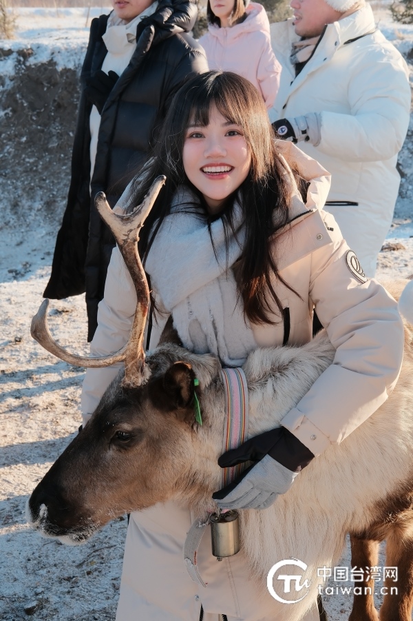 1月26日,2024年全國臺(tái)聯(lián)第三十屆臺(tái)胞青年冬令營內(nèi)蒙古分營一行人前往敖魯古雅鄂溫克民族鄉(xiāng),陳紀(jì)陵與馴鹿合影留念。(臺(tái)灣同學(xué) 王奕勛 攝)