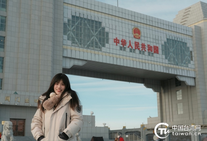 1月27日,2024年全國臺(tái)聯(lián)第三十屆臺(tái)胞青年冬令營內(nèi)蒙古分營一行人前往中俄第五代國門參訪,陳紀(jì)陵于中俄第五代國門前“打卡”留念。(臺(tái)灣同學(xué) 王奕勛 攝)