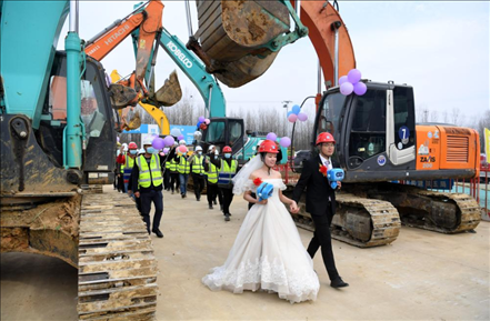 2021年2月8日,中建五局安徽公司合肥聚變堆項(xiàng)目技術(shù)人員蔣吉豐和愛(ài)人張小菊在項(xiàng)目工地舉辦了一場(chǎng)簡(jiǎn)樸、溫馨的婚禮。