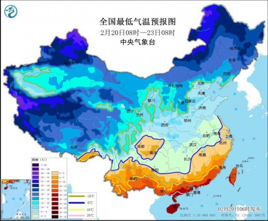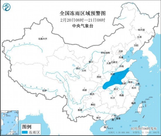 中央氣象臺2月20日06時發(fā)布冰凍黃色預警: