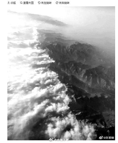 中國天氣網(wǎng)曬出“涇渭分明”氣候現(xiàn)象