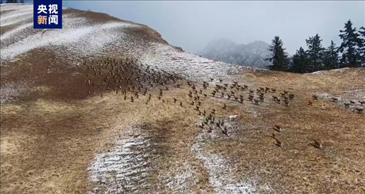 近日,甘肅祁連山國家級自然保護區(qū)寺大隆自然保護站管護人員利用無人機巡護時,拍攝到一大群巖羊在雪地覓食、追逐,據管護人員目測達200多只。