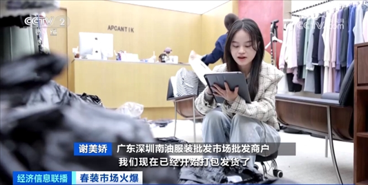 廣東深圳南油服裝批發(fā)市場批發(fā)商戶邱林告訴記者,去年這個時候,他們店里積壓了很多春季庫存,但今年幾天就賣完了原本供2個月的現(xiàn)貨,目前工廠都忙著趕訂單。