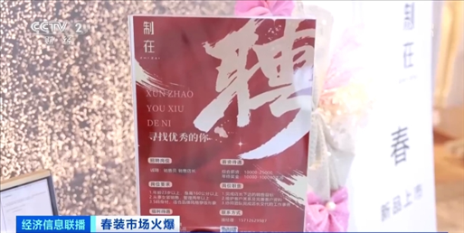 服裝批發(fā)生意的火熱,也帶來了用工需求的增加,不少檔口都貼上了招工的廣告。廣東深圳南油服裝批發(fā)市場批發(fā)商戶 邱林:現(xiàn)在的翻單需求量比較大,大家都在搶工人,現(xiàn)在排單排到快半個月、十幾天,我們店鋪還在招店員。