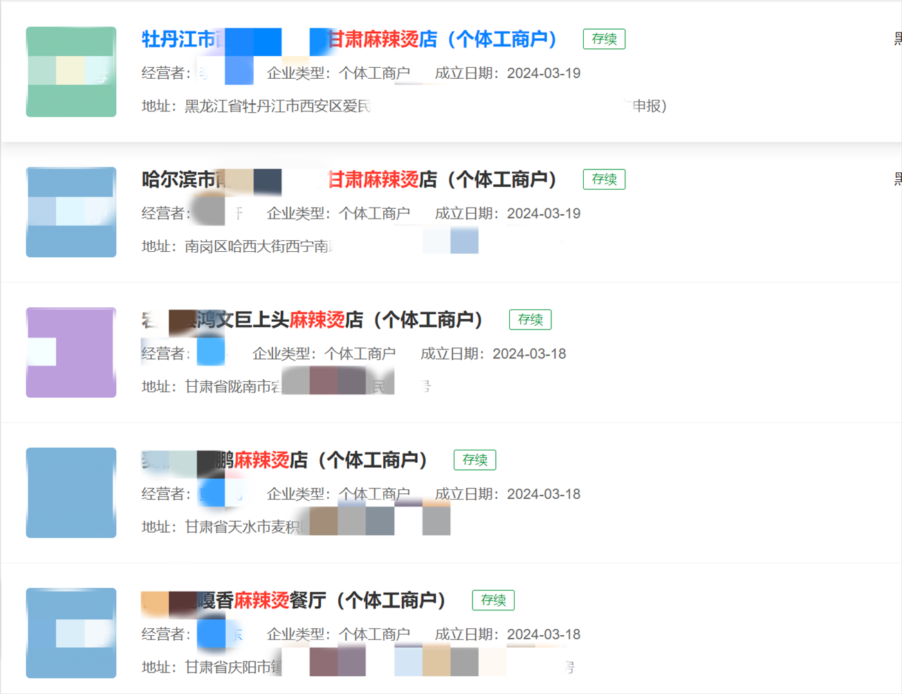 根據(jù)天眼查,今年2月至今,全國新開業(yè)的“甘肅麻辣燙”店已累計(jì)超過150家。