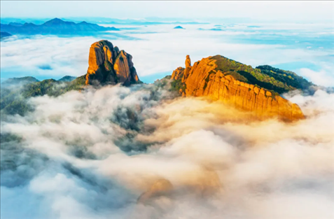 位于江西上饒市弋陽(yáng)縣的龜峰,既有精雕細(xì)刻的靈巧,又有刀削斧劈的粗獷。景區(qū)內(nèi)有丹霞峰林、峰叢、孤峰石柱等自然景觀23種,有著“丹霞模式標(biāo)本”的美譽(yù)。