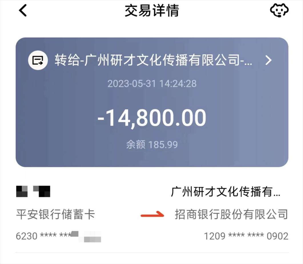 來(lái)自北京的陳鑫(化名)說(shuō),他被上述話術(shù)吸引,去年5月報(bào)了廣州研才教育機(jī)構(gòu)的“院校推免保送研究生課程”。咨詢時(shí),招生老師向他承諾“渠道直錄,考研保過(guò)”,并稱還能通過(guò)“院校委培”的方式,幫他把20萬(wàn)元左右的MBA學(xué)費(fèi)降為1.5萬(wàn)元。