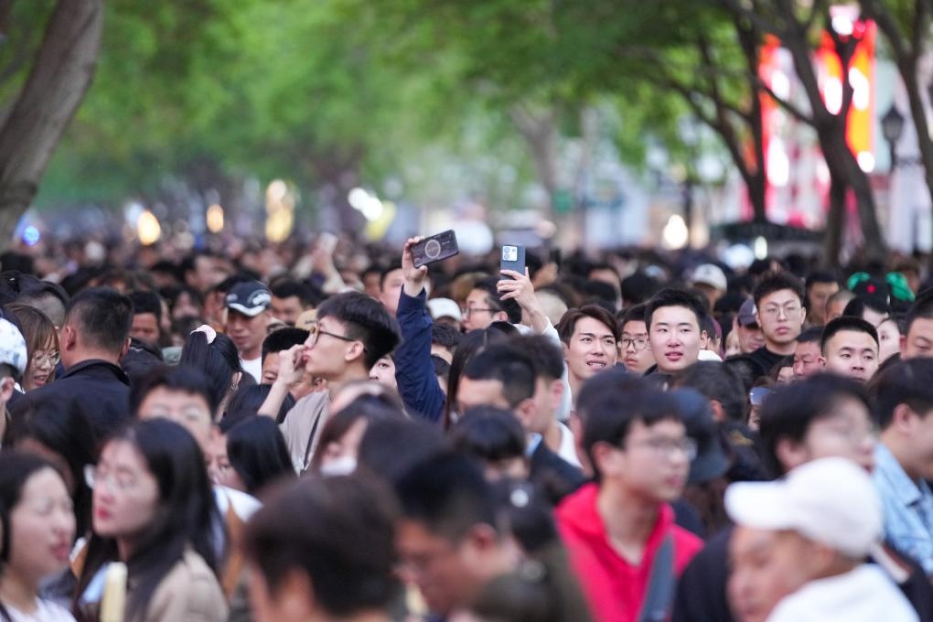 5月1日,哈爾濱中央大街上人頭攢動。新華社記者 王建威 攝