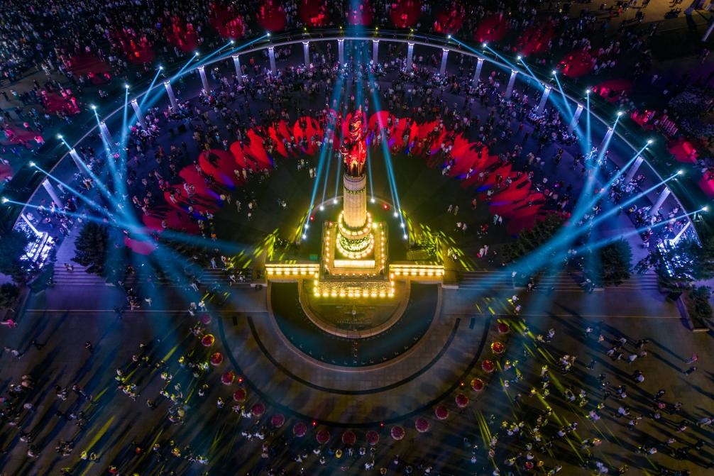 夜幕降臨,哈爾濱防洪勝利紀(jì)念塔廣場格外絢麗,萬眾期待的松花江光影秀準(zhǔn)時上演。聲、光、電交織舞動,以防洪紀(jì)念塔為中心,隔江呼應(yīng)著太陽島,每一次光影的變化都映射出這座城市獨特的文化意象。