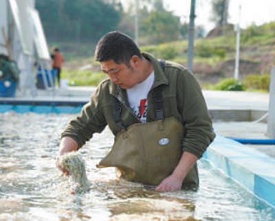 “養(yǎng)魚是個技術(shù)活兒。”一大早,農(nóng)民技術(shù)員倪闖便在重慶網(wǎng)聯(lián)淡水魚養(yǎng)殖場忙碌開了,他一邊為魚兒喂食,一邊仔細(xì)觀察魚兒狀態(tài)。2009年,倪闖辦起了魚苗培育基地,憑借一手好技術(shù),逐漸成為遠(yuǎn)近聞名的養(yǎng)魚能手。在相關(guān)部門支持下,倪闖每年都會定期對村民進(jìn)行技術(shù)培訓(xùn),還經(jīng)常到其他養(yǎng)殖場進(jìn)行技術(shù)指導(dǎo)。