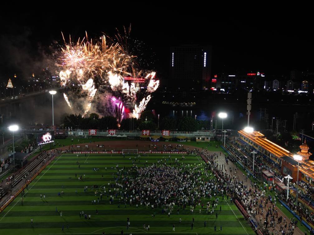 從全明星比拼,到中場(chǎng)的樂(lè)隊(duì)表演,再到終場(chǎng)的小型煙花秀,當(dāng)晚的慶?;顒?dòng)驚喜連連?!啊宄恢痹诔掷m(xù)打造文體‘嘉年華’,不斷豐富賽事內(nèi)容,力爭(zhēng)給球迷和游客帶來(lái)全新的體驗(yàn)和持續(xù)的歡樂(lè)。”貴州“村超”組委會(huì)成員、榕江縣文化館館長(zhǎng)李莎介紹,“村超”新賽季開(kāi)啟決賽階段的比賽以來(lái),除了延續(xù)上賽季的拉拉隊(duì)巡演、美食投喂、中場(chǎng)表演等精彩內(nèi)容外,還推出了“全民K歌”和“萬(wàn)人蹦迪”等活動(dòng),體驗(yàn)感和歡樂(lè)度都得到了提升。