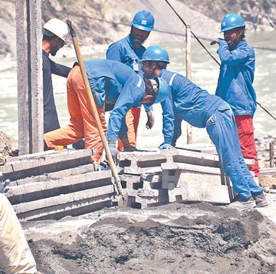 為保障喀喇昆侖公路暢通,巴中兩國(guó)工程人員正在進(jìn)行施工。本報(bào)巴基斯坦分社 賽義德·邁赫迪攝