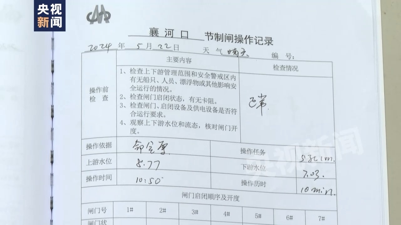 記者在安徽省駟馬山引江工程襄河口閘管理所的節(jié)制閘操作記錄本上看見,發(fā)現在5月18日上午,這里的節(jié)制閘原本已處于完全關閉狀態(tài)。然而在發(fā)現水體污染的兩天后,5月22日上午10點50分,襄河口七孔節(jié)制閘中的五孔開閘,在閘前聚集兩天的污水一路暢通地進入滁河。這一次放水直至5月23日15點50分結束,時間長達29個小時。