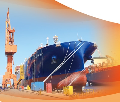 大連船舶重工集團(tuán)正在建造的大型液化天然氣(LNG)運輸船。新華社記者 楊 青攝