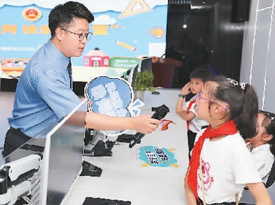 安徽省蕪湖市公安局繁昌分局城關(guān)派出所民警給小學(xué)生普及網(wǎng)絡(luò)安全知識(shí)。肖本祥攝(人民視覺(jué))