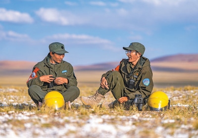 扎西羅布(右)和同事在巡護(hù)途中休息。以上圖片均為本報記者徐馭堯攝