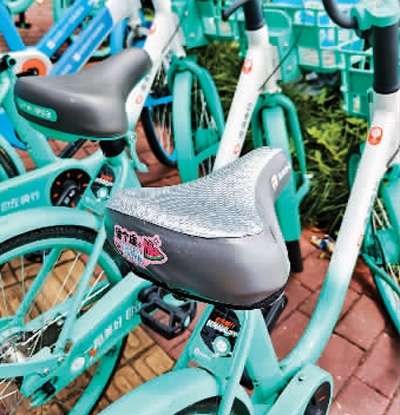 為了應(yīng)對(duì)炎熱天氣,上海街頭一些共享單車換上了“清涼坐墊”。王 初攝(人民視覺(jué))