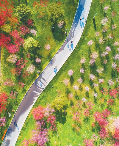 我國(guó)將綠色發(fā)展理念融入城鄉(xiāng)規(guī)劃建設(shè)管理中,穩(wěn)步推進(jìn)建設(shè)連通區(qū)域、城市、社區(qū)的城鄉(xiāng)綠道體系。2023年,我國(guó)建設(shè)口袋公園4100多個(gè)、綠道5300多公里,拓展草坪開放空間1.1萬公頃,截至今年5月底,已建設(shè)各類城市綠道約10萬公里。