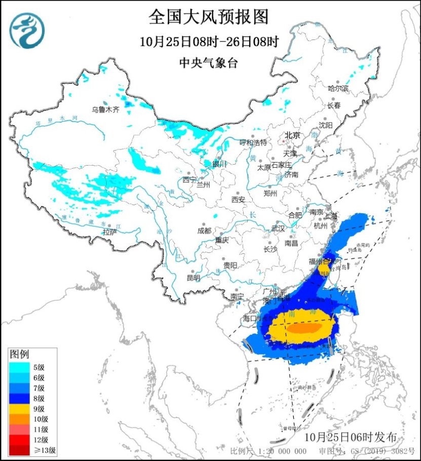 未來(lái)24小時(shí),東海西部海域、臺(tái)灣海峽、南海北部和中部海域、巴士海峽、東沙群島、中沙群島、西沙群島將有7~9級(jí)、陣風(fēng)10~11級(jí)的大風(fēng),其中南海中東部的部分海域風(fēng)力可達(dá)10級(jí)、陣風(fēng)11~12級(jí)。