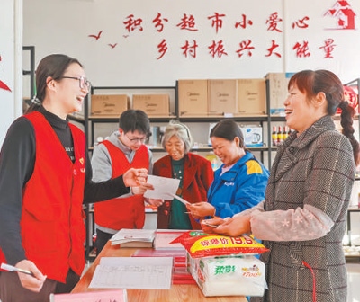 德化人心江西省瑞昌市高豐鎮(zhèn)建立文明積分制度,村民參加志愿服務(wù)等活動(dòng)可以獲取積分,并到“鄉(xiāng)風(fēng)文明超市”兌換生活日用品。魏東升攝(人民視覺)