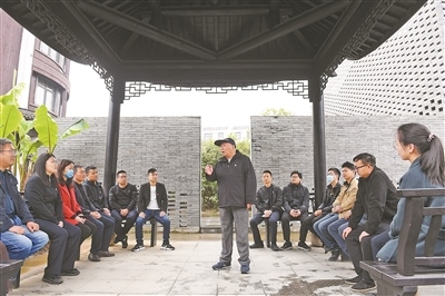 凝聚人心在浙江省諸暨市楓橋鎮(zhèn)魏廉村,老黨員魏杏根(中)給年輕黨員分享化解基層矛盾、團(tuán)結(jié)鄰里的故事。新華社記者 翁忻旸攝