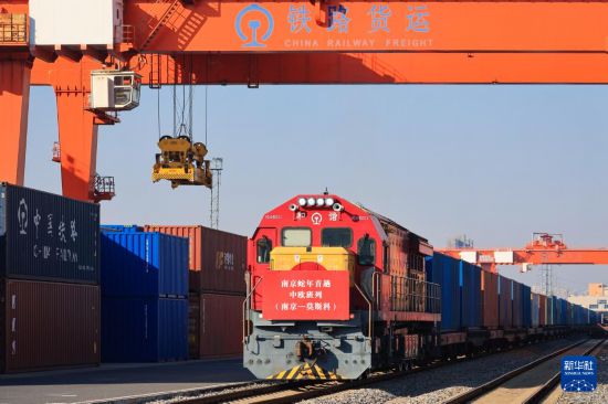 當(dāng)日是農(nóng)歷大年初一,一列滿載110標(biāo)箱紡織品、汽車配件、電子機(jī)械設(shè)備等貨物的中歐班列從南京鐵路物流中心堯化門站貨場(chǎng)啟程,開往俄羅斯莫斯科。這是農(nóng)歷新年南京開出的首趟中歐班列。