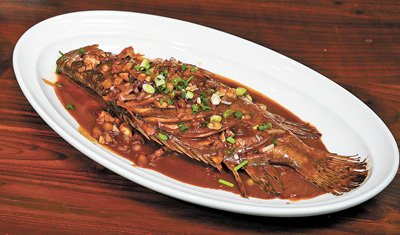 色澤紅亮的臭鱖魚上桌,一股獨(dú)特的氣味撲鼻而來(lái)。食客余敏麗馬上動(dòng)筷——蒜瓣?duì)畹聂~肉放入口中,肉質(zhì)緊實(shí)又絲絲入味,魚肉上還有肉丁、筍丁,“聞起來(lái)臭,吃起來(lái)可真香!”