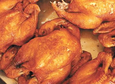 德州扒雞又名德州五香脫骨扒雞,作為德州的傳統(tǒng)名吃,以其獨(dú)特風(fēng)味而聞名。德州扒雞形美色鮮,肉嫩可口,五香純正,熟爛透骨,入口即化。德州扒雞選材苛刻,精選優(yōu)質(zhì)活雞制作,搭配20多種中藥材和調(diào)料,經(jīng)20道工序精制而成,營(yíng)養(yǎng)豐富,美味可口,素有“中華第一雞”的美譽(yù)。