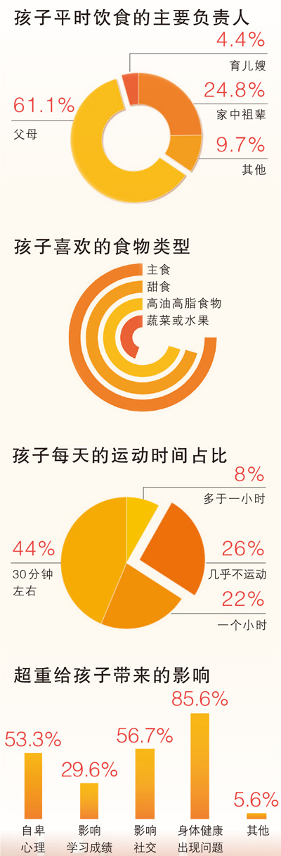 5月19日,人民日?qǐng)?bào)健康客戶端聯(lián)合全國(guó)近30家兒童醫(yī)院開(kāi)展兒童青少年肥胖現(xiàn)狀調(diào)研,回收的近300份肥胖兒童有效問(wèn)卷顯示,超重給孩子帶來(lái)了諸多問(wèn)題,其中身體健康出現(xiàn)問(wèn)題的比例高達(dá)85.6%,而心理出現(xiàn)問(wèn)題的比例達(dá)53.3%。
