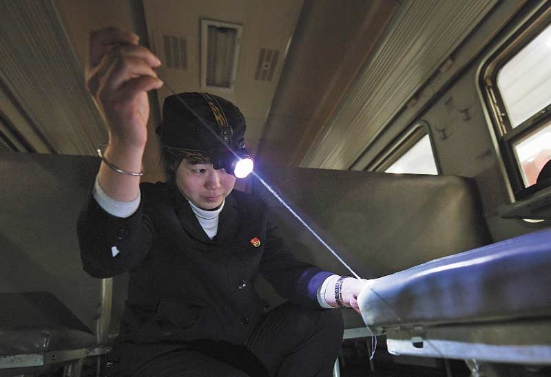 “時(shí)間緊,任務(wù)重。我們的職工加班加點(diǎn)排查整修支南列車的制動(dòng)裝置、電器線路等關(guān)鍵部位,就連列車茶爐、洗面間、空調(diào)、衛(wèi)生間等服務(wù)設(shè)備也不放過(guò),為的就是能給回家過(guò)年的旅客打造一個(gè)更安全、更舒適的乘車環(huán)境。”說(shuō)起自己的隊(duì)伍,包頭車輛段黨委副書記白世平很驕傲。(內(nèi)蒙古日?qǐng)?bào)社融媒體記者孟和朝魯攝影報(bào)道)