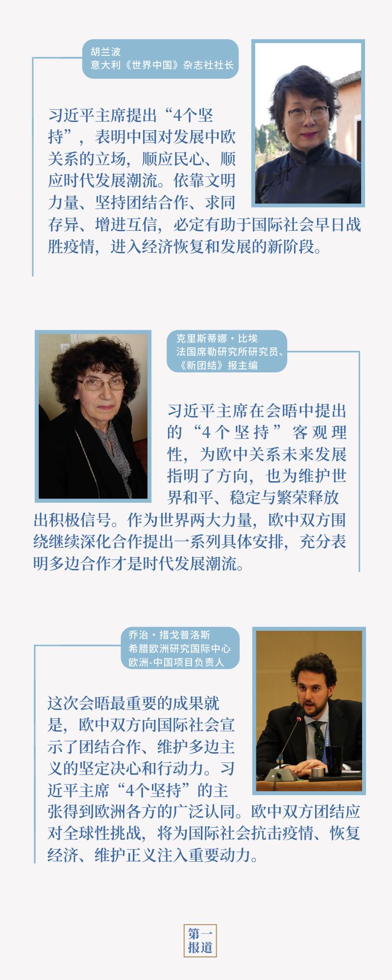 習(xí)主席關(guān)于中歐關(guān)系的這些重要論述,意涵深刻。“4個堅持”,為下階段中歐關(guān)系發(fā)展指明方向,也體現(xiàn)中國深化中歐全面戰(zhàn)略伙伴關(guān)系的誠意擔(dān)當(dāng)。