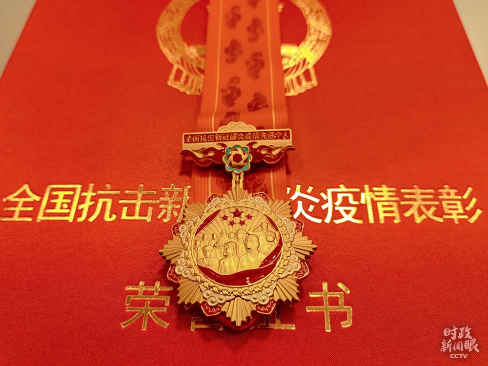 △全國抗擊新冠肺炎疫情先進個人獎?wù)潞妥C書。(總臺央視記者張淳拍攝)