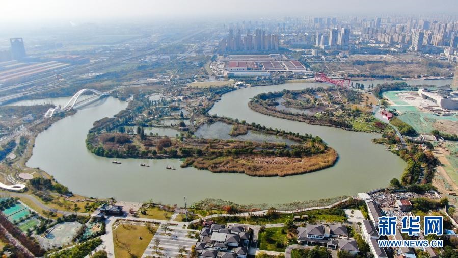 這是11月14日拍攝的江蘇省揚州市運河三灣生態(tài)文化公園景色(無人機照片)。新華社記者 季春鵬 攝