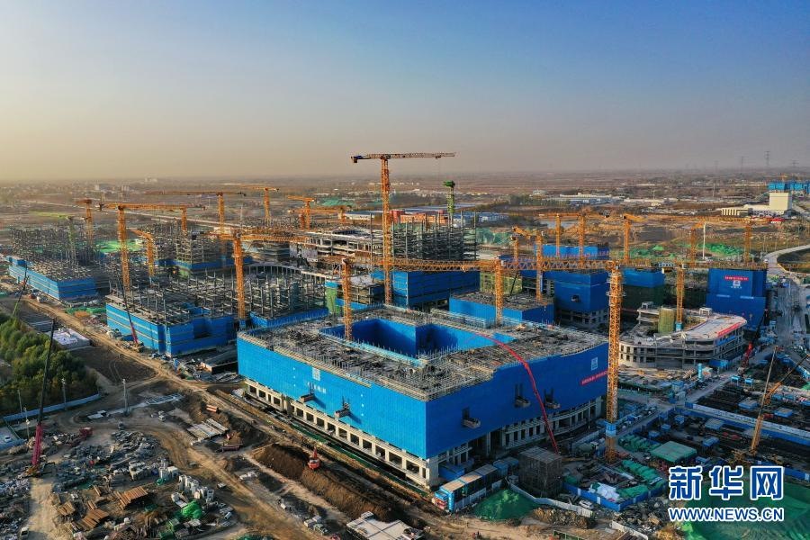 這是11月6日拍攝的河北雄安新區(qū)商務(wù)服務(wù)中心建設(shè)現(xiàn)場(無人機照片)。新華社記者 牟宇 攝