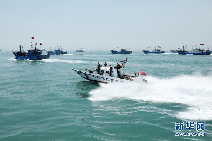 海警執(zhí)法員加強海域巡邏,防止黑惡勢力滋擾作業(yè)漁船(8月16日攝)。新華社發(fā)(翟少華攝)