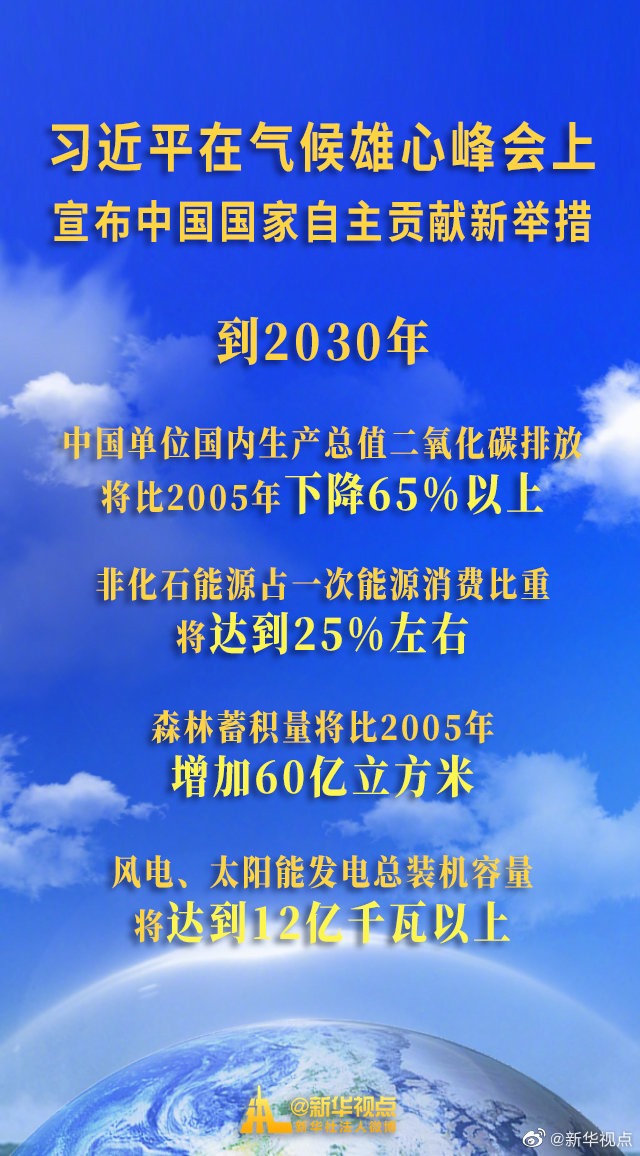 12月12日,國家主席習近平在氣候雄心峰會上宣布中國國家自主貢獻新舉措。