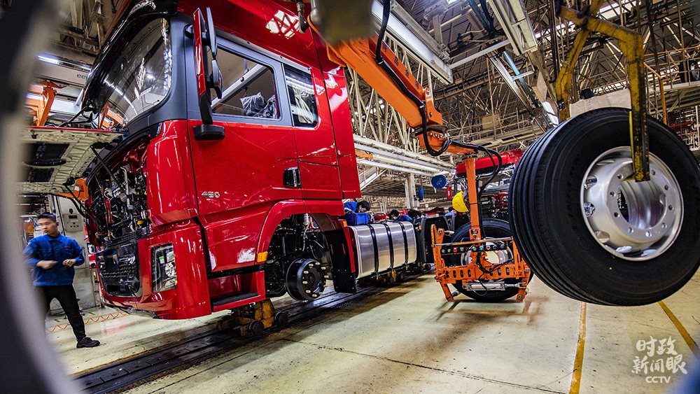 △1月4日,工人在陜重汽總裝生產(chǎn)線上作業(yè)。2020年4月,總書記在陜汽調(diào)研時曾強調(diào),制造業(yè)是國家經(jīng)濟命脈所系。