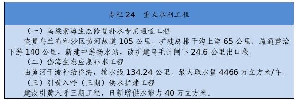 大力推進黃河生態(tài)帶建設(shè),統(tǒng)籌水環(huán)境、水生態(tài)、水資源、水安全、水文化,推進干支流一體化治理,突出抓好十大孔兌、多沙粗砂區(qū)集中來源區(qū)等水土保持治理,實施河道和灘區(qū)綜合提升治理工程,完善水沙調(diào)控機制。深化“一湖兩海”及察汗淖爾生態(tài)環(huán)境綜合治理,創(chuàng)新區(qū)域系統(tǒng)治理和流域整體治理舉措,逐步改善生態(tài)環(huán)境。全面加強嫩江、遼河、內(nèi)陸河水系等流域和達里諾爾、烏拉蓋等濕地生態(tài)保護修復(fù),深入開展地下水超采綜合治理。