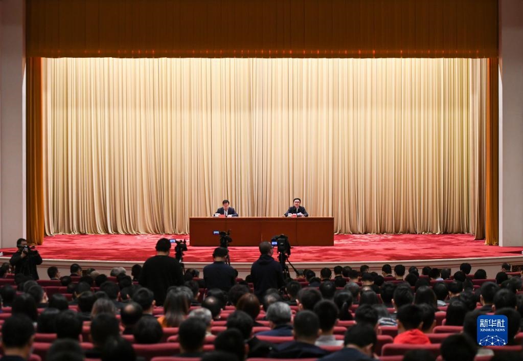 2021年3月16日,黨史學(xué)習(xí)教育中央宣講團首場報告會在北京舉行。這是中央宣講團成員、中央黨史和文獻研究院院長曲青山(右)在報告會上作宣講報告。新華社記者陳曄華攝