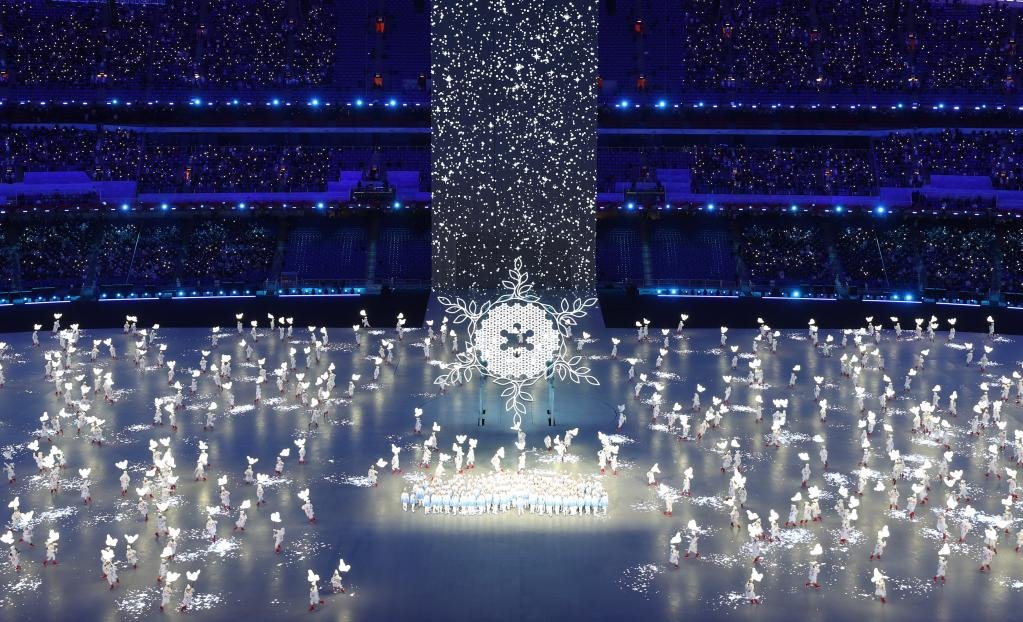 2月4日晚,第二十四屆冬季奧林匹克運動會開幕式上的“雪花”環(huán)節(jié)。新華社記者楊磊攝