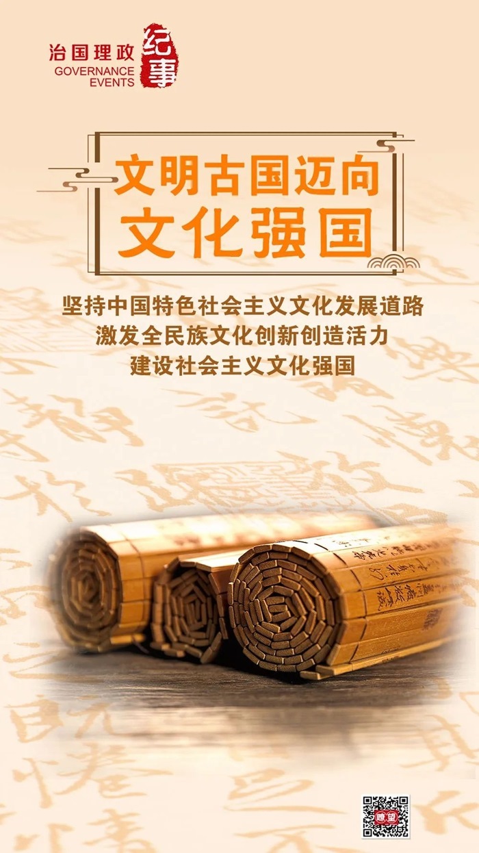◆ 黨的十八大以來(lái),以習(xí)近平同志為核心的黨中央高度重視文化強(qiáng)國(guó)建設(shè),從黨的十八屆三中全會(huì)提出要“緊緊圍繞建設(shè)社會(huì)主義核心價(jià)值體系、社會(huì)主義文化強(qiáng)國(guó)深化文化體制改革”,到黨的十九大報(bào)告強(qiáng)調(diào)“要堅(jiān)持中國(guó)特色社會(huì)主義文化發(fā)展道路,激發(fā)全民族文化創(chuàng)新創(chuàng)造活力,建設(shè)社會(huì)主義文化強(qiáng)國(guó)”,再到黨的十九屆五中全會(huì)明確提出到2035年建成文化強(qiáng)國(guó),“十四五”規(guī)劃和2035年遠(yuǎn)景目標(biāo)綱要提出“促進(jìn)滿足人民文化需求和增強(qiáng)人民精神力量相統(tǒng)一,推進(jìn)社會(huì)主義文化強(qiáng)國(guó)建設(shè)”,社會(huì)主義文化強(qiáng)國(guó)建設(shè)不斷深入向前