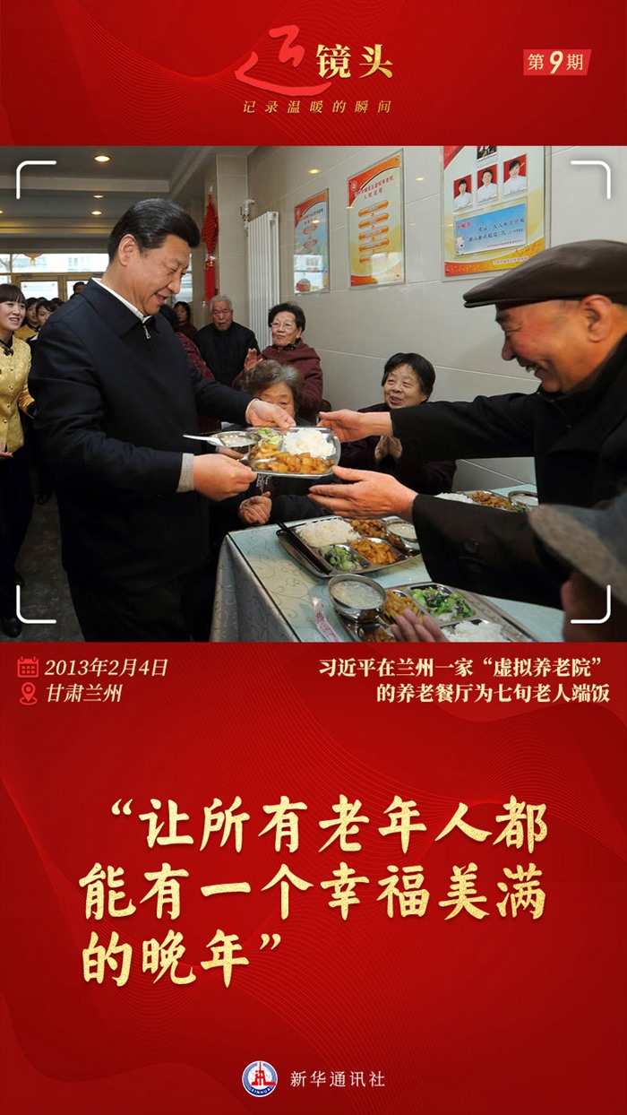 2013年2月,習(xí)近平總書記曾來(lái)到這里,詳細(xì)了解虛擬養(yǎng)老院的運(yùn)行情況?!帮埩繅虿粔颍俊薄靶l(wèi)生不衛(wèi)生?”“全市有多少這樣的餐廳?”他一一問來(lái),還端起一盤熱氣騰騰的飯菜,送給就餐的老人,向老人們拜年,祝愿他們新春愉快、身體健康、安享晚年。