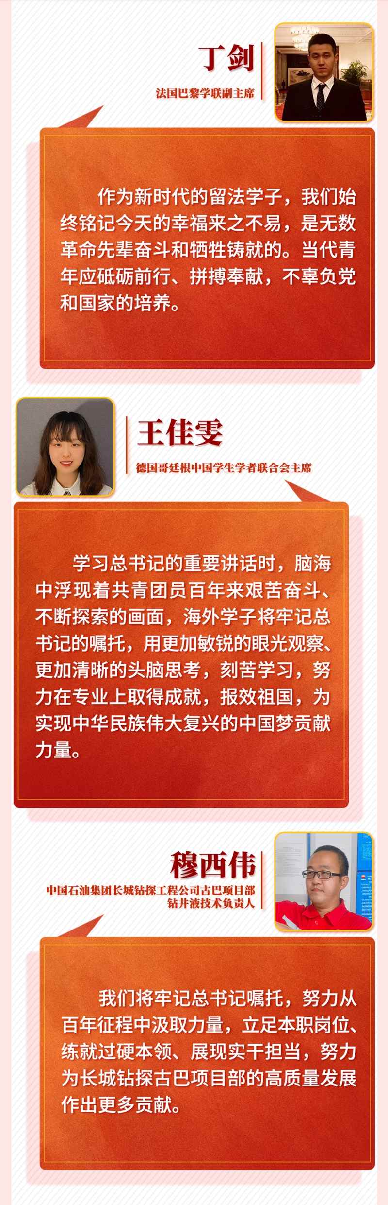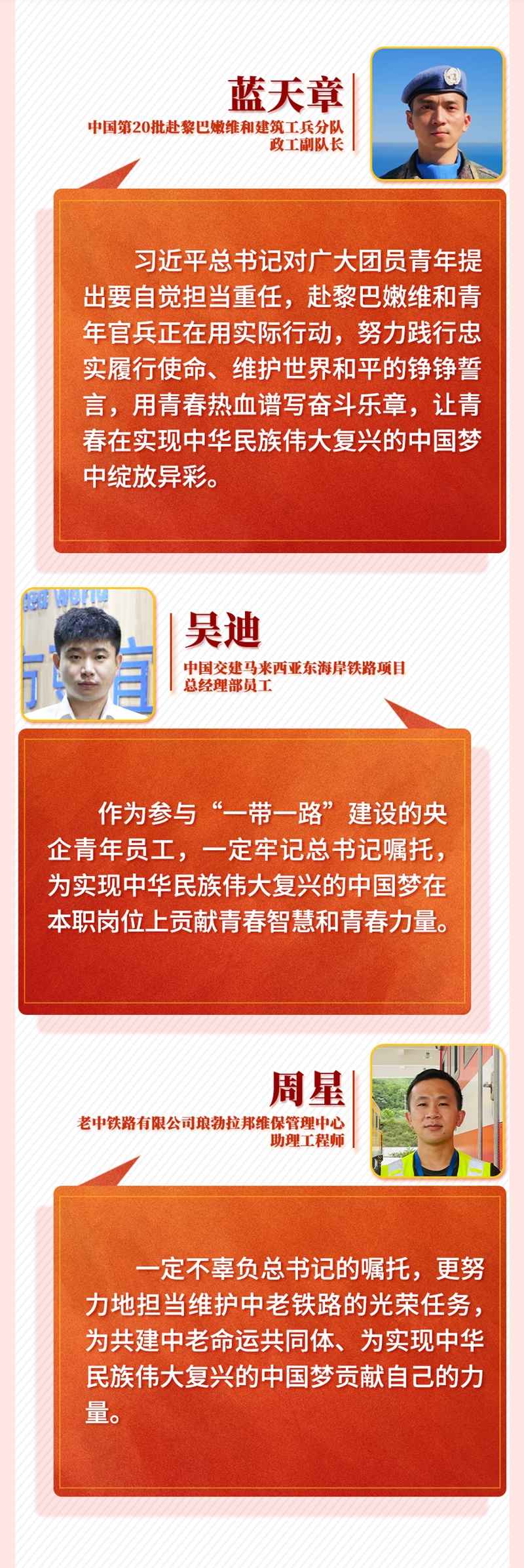 習(xí)近平總書記的重要講話令身在海外的中國青年備受鼓舞。他們一致表示,作為新時代的中國青年,一定牢記習(xí)近平總書記囑托,帶著夢想和使命,讓青春在海外煥發(fā)異彩,在實現(xiàn)中華民族偉大復(fù)興中國夢的新征程上奮勇前進(jìn),用青春的智慧和汗水打拼出一個更加美好的中國。
