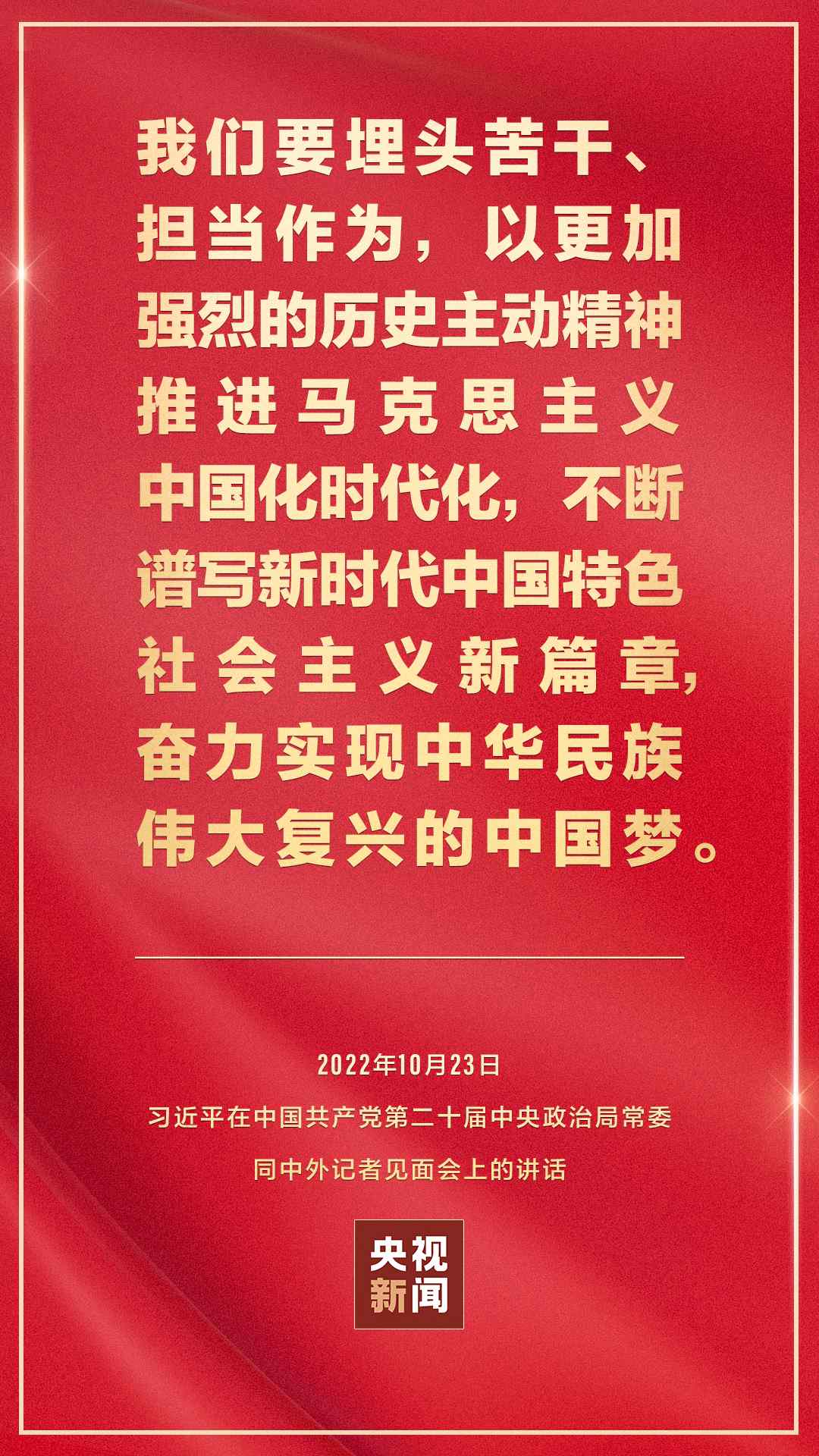 在中國(guó)共產(chǎn)黨第二十屆中央委員會(huì)第一次全體會(huì)議上當(dāng)選的中共中央總書(shū)記習(xí)近平和中共中央政治局常委李強(qiáng)、趙樂(lè)際、王滬寧、蔡奇、丁薛祥、李希,23日中午在人民大會(huì)堂同采訪中共二十大的中外記者見(jiàn)面。習(xí)近平發(fā)表重要講話。