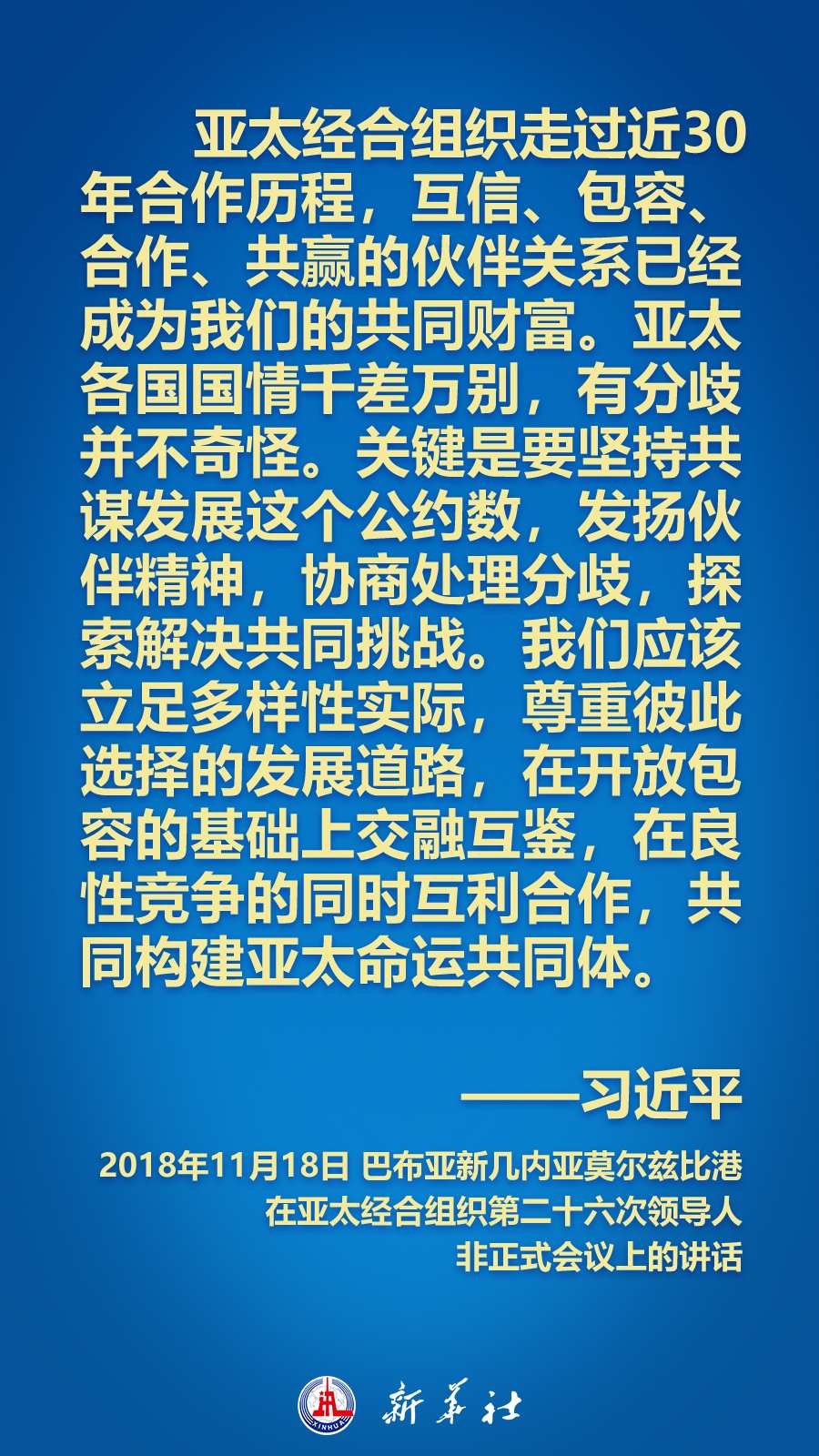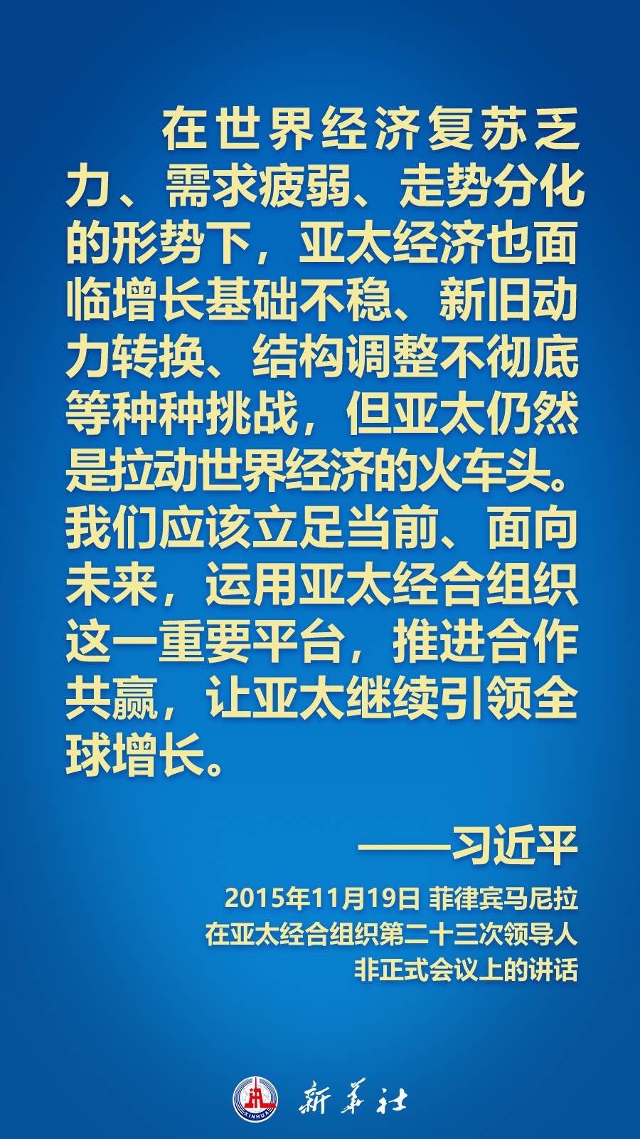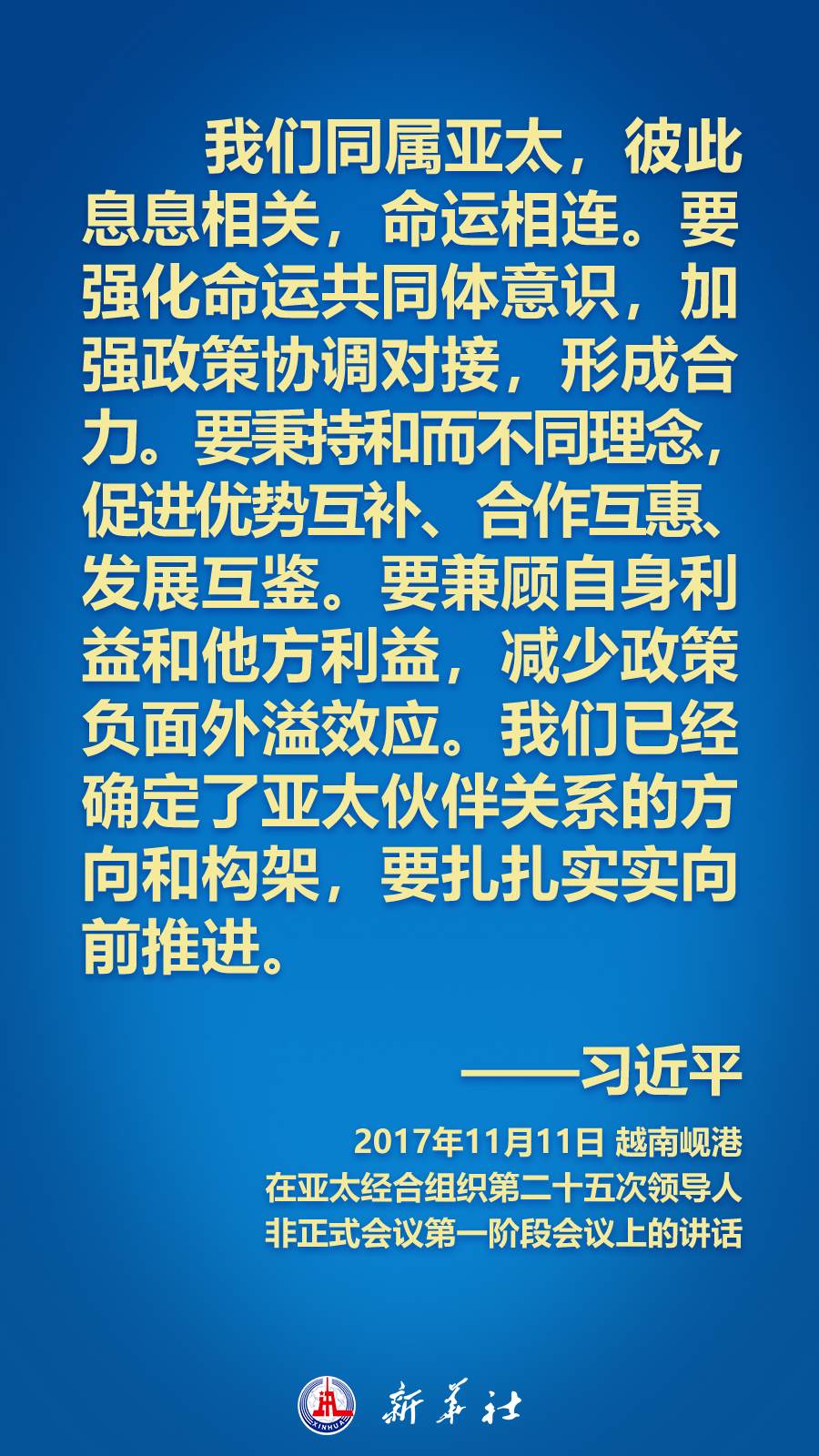在以往的亞太經(jīng)合組織領(lǐng)導(dǎo)人非正式會(huì)議上,習(xí)近平主席多次闡述構(gòu)建開放包容、創(chuàng)新增長、互聯(lián)互通、合作共贏的亞太命運(yùn)共同體的理念主張和重大意義,為亞太乃至全球經(jīng)濟(jì)發(fā)展指明方向,注入強(qiáng)勁動(dòng)力。